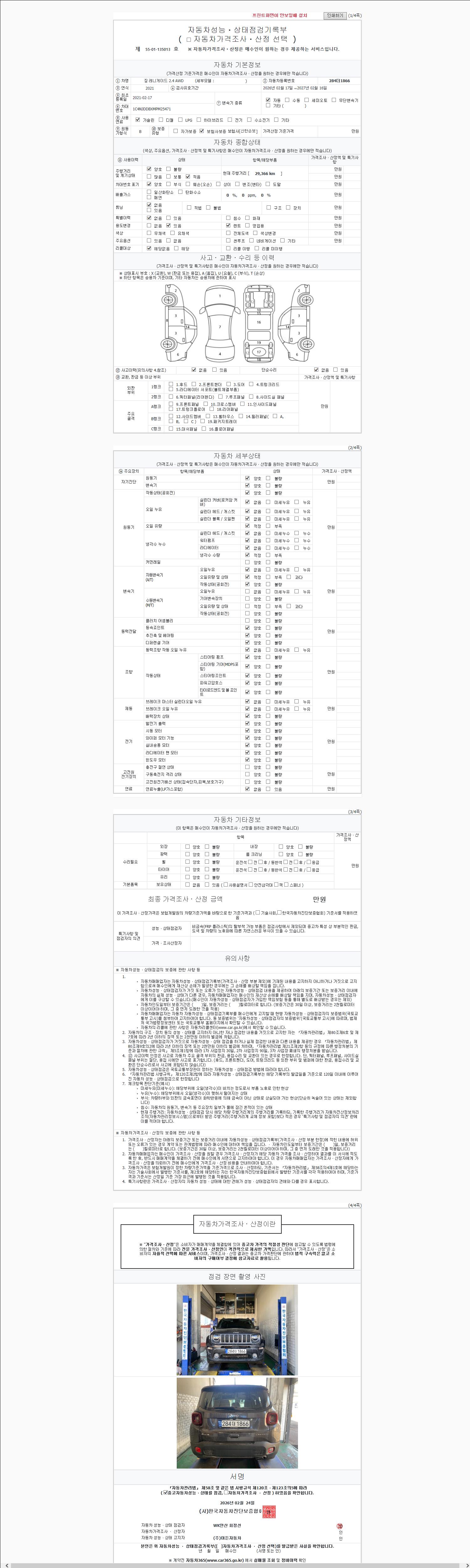 -중고자동차 매매업자를 통해 차량을 구입하실 경우 반드시 "중고자동차 성능, 상태점검 기록부"를 교뷰 받으셔야 하며, 매매업자는 반드시 의무 교부 하여야 압니다.
