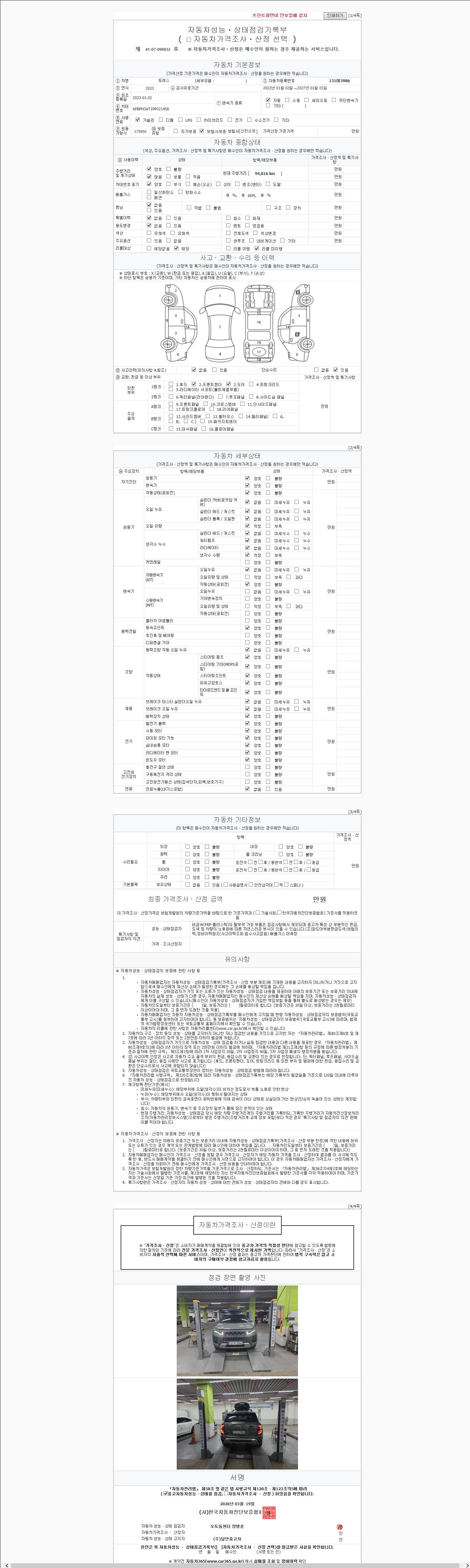 | 주행거리 | 94,816 km | 차량번호 | 131어3986 |