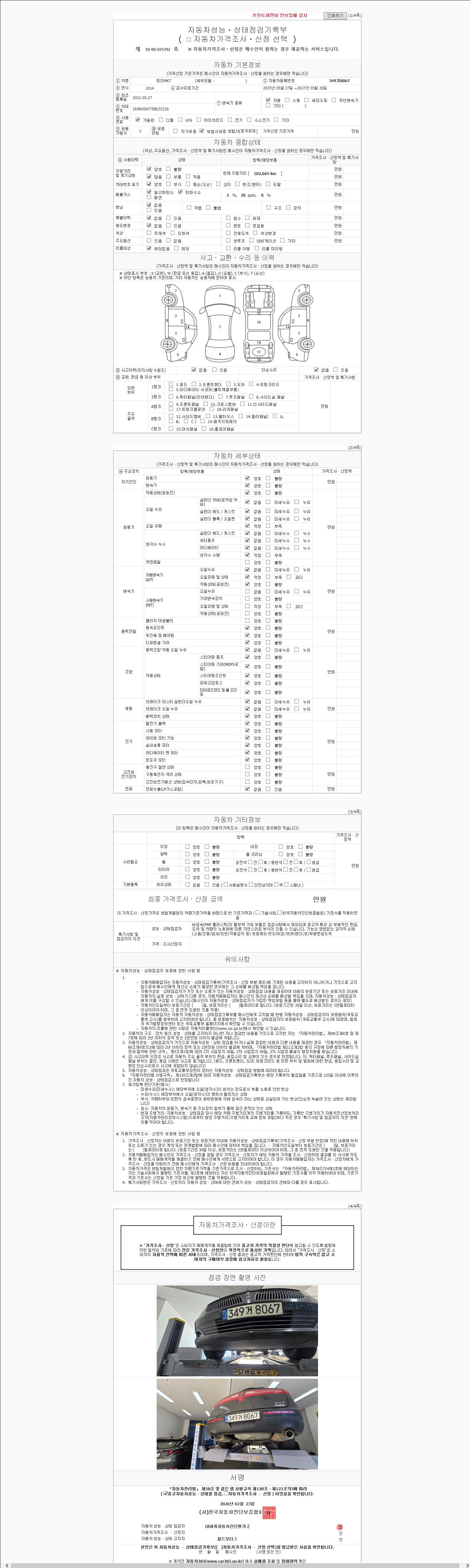 | 주행거리 | 102,665 km | 차량번호 | 349거8067 |