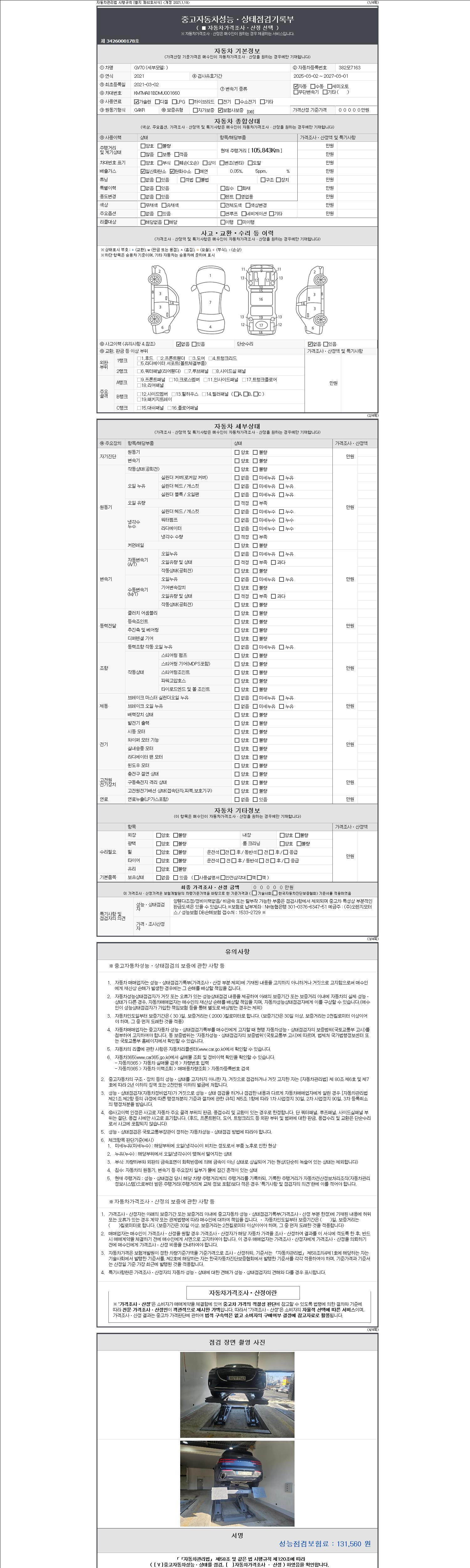 2. 차량 등록증이나 성능점검지 등을 상담자에게 요청및 확인하시고 사전에 미리 점검 하시기를 권유드립니다.