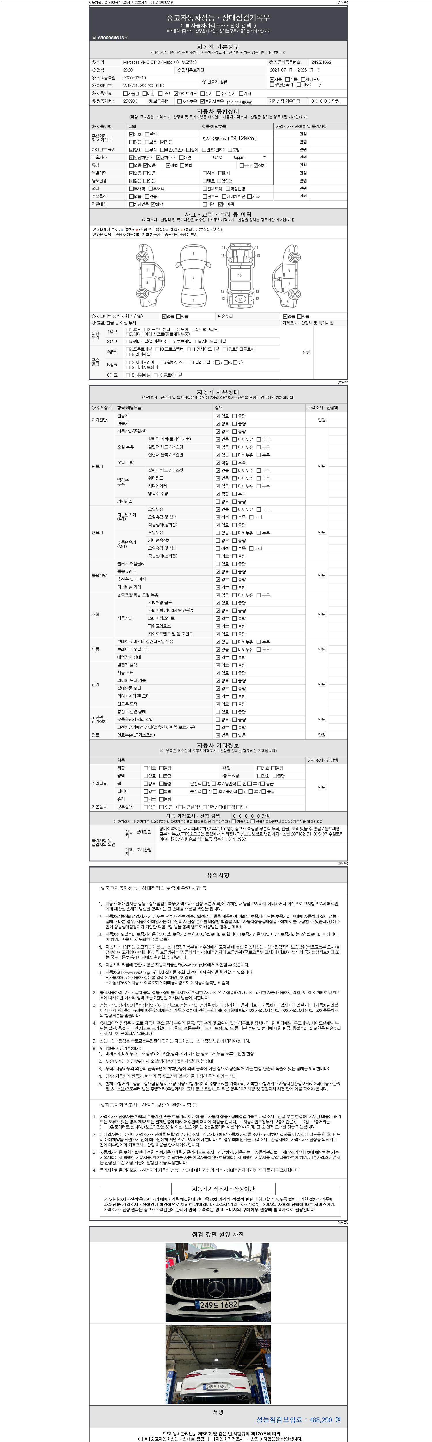 | 주행거리 | 69,109 km | 차량번호 | 249도1682 |
