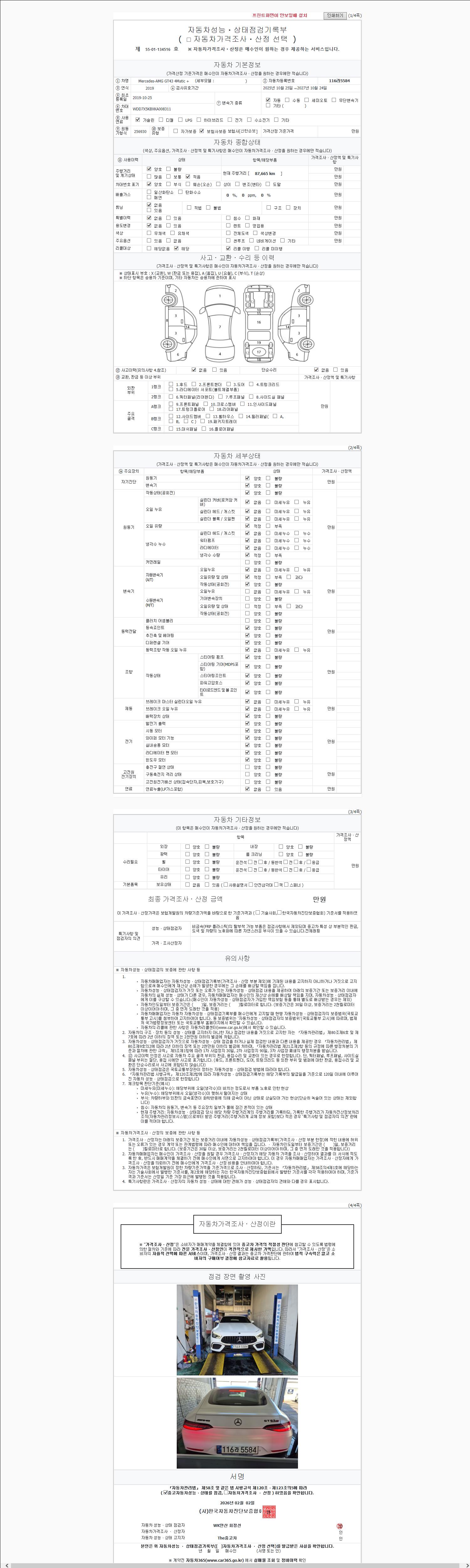| 주행거리 | 87,665 km | 차량번호 | 116라5584 |