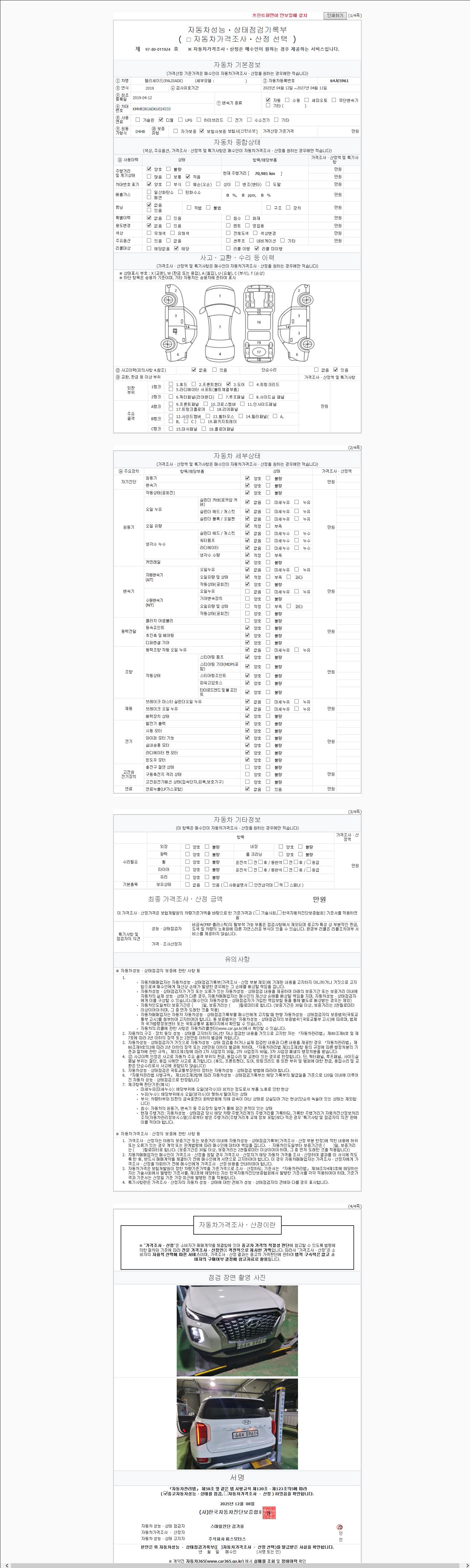 | 사고유무 | 성능기록부 참조 | 제시번호 | 제 2025040801 호 |