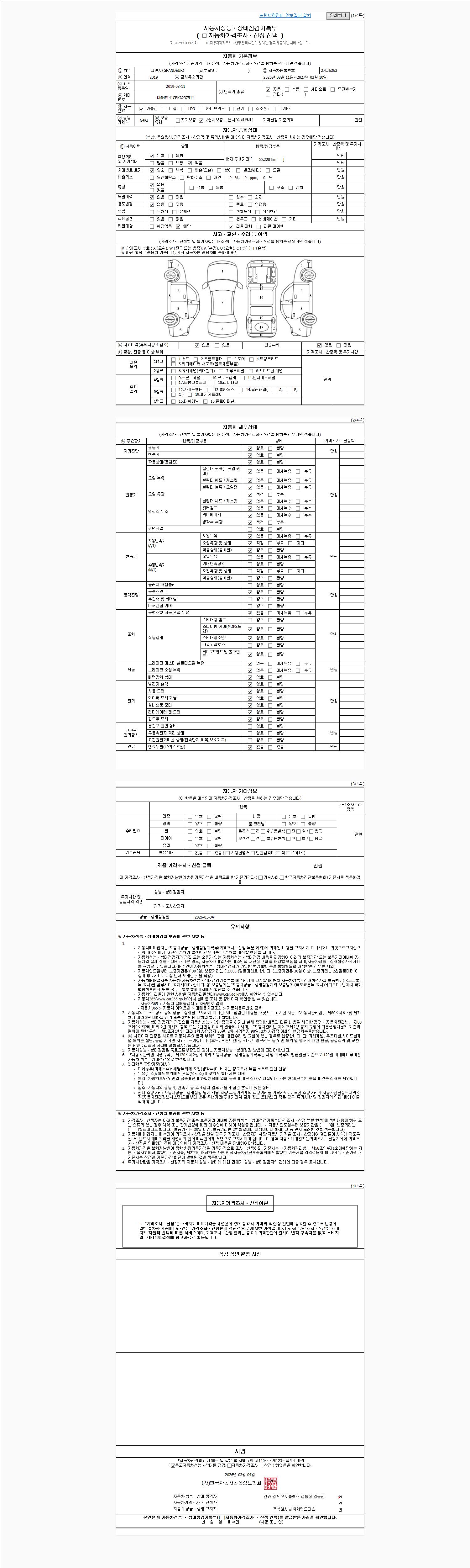 | 사고유무 | 성능기록부 참조 | 제시번호 | 제 2026026819 호 |