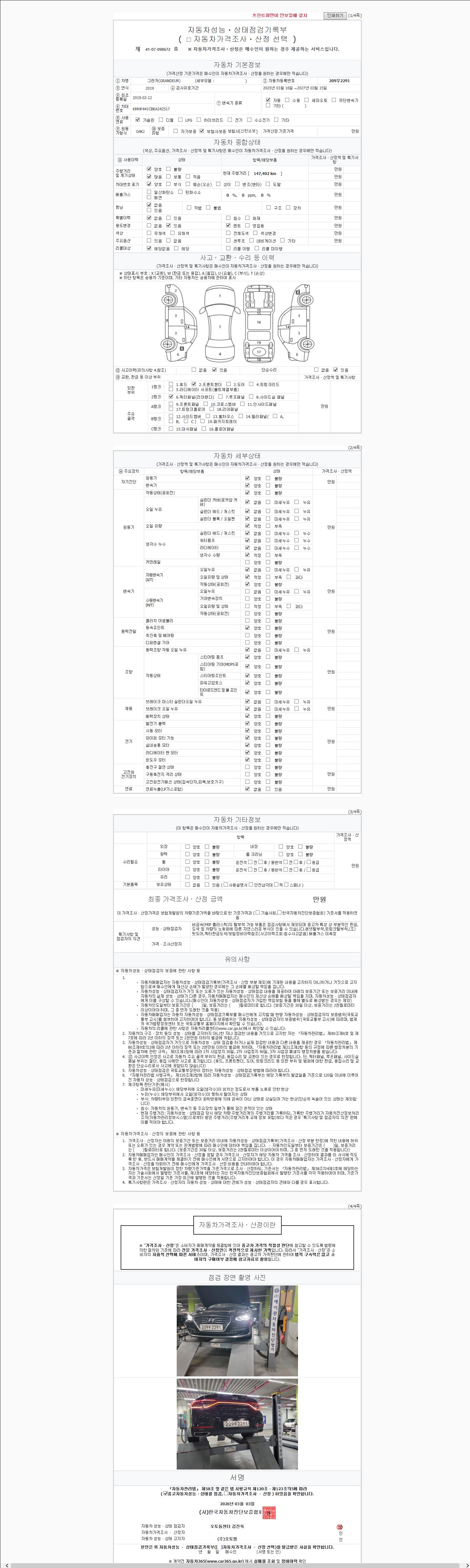 2. 차량 등록증이나 성능점검지 등을 상담자에게 요청및 확인하시고 사전에 미리 점검 하시기를 권유드립니다.
