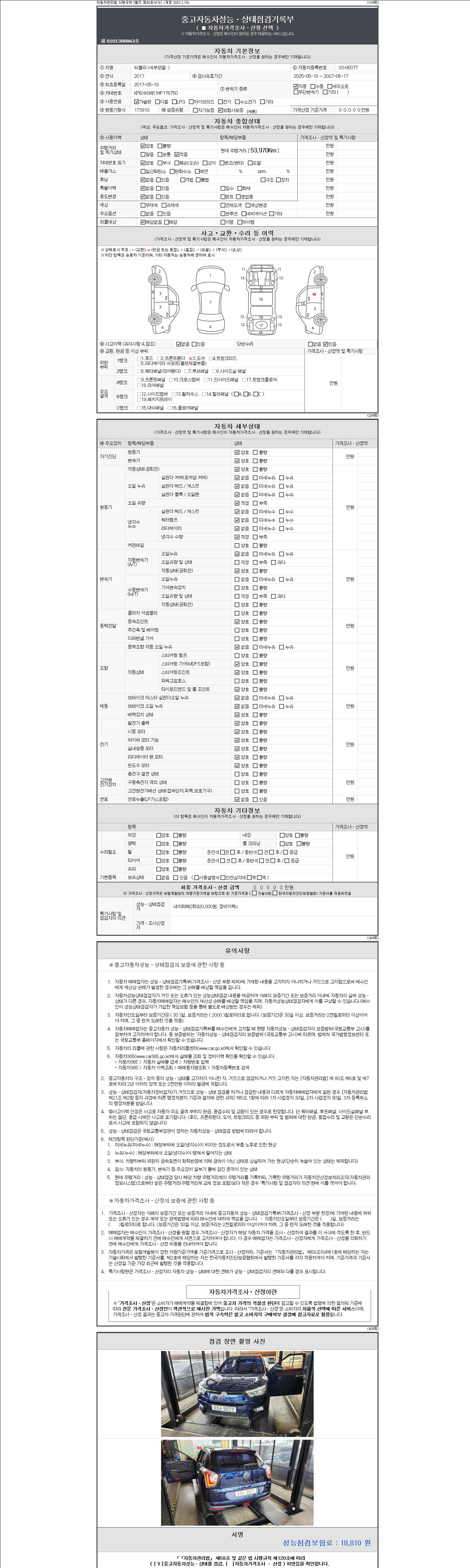 2. 차량 등록증이나 성능점검지 등을 상담자에게 요청및 확인하시고 사전에 미리 점검 하시기를 권유드립니다.