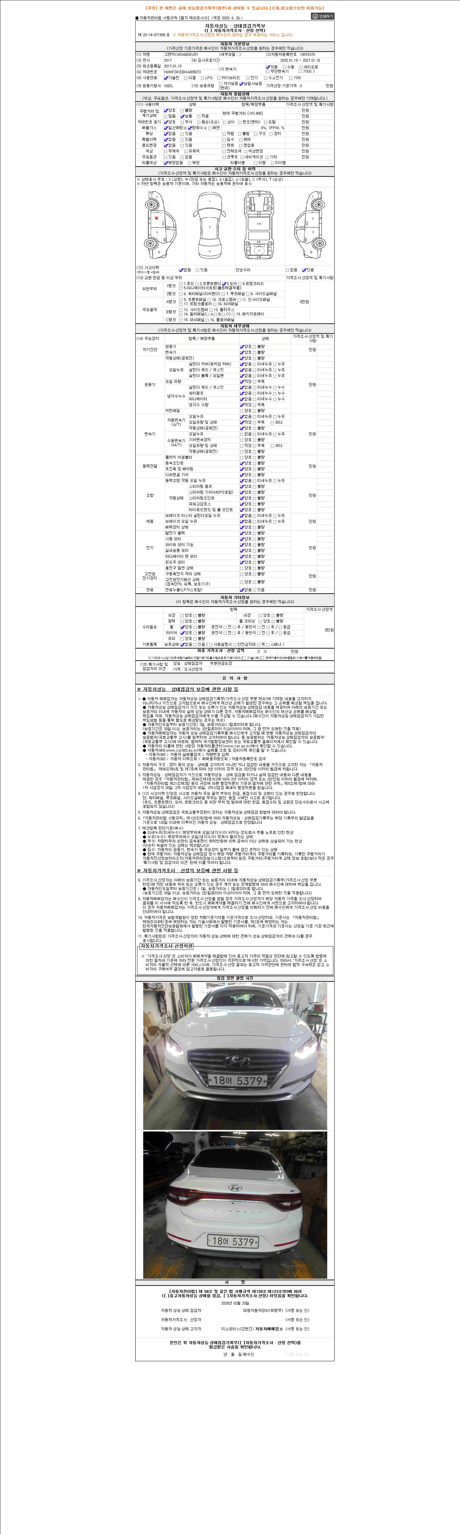 2. 차량 등록증이나 성능점검지 등을 상담자에게 요청및 확인하시고 사전에 미리 점검 하시기를 권유드립니다.