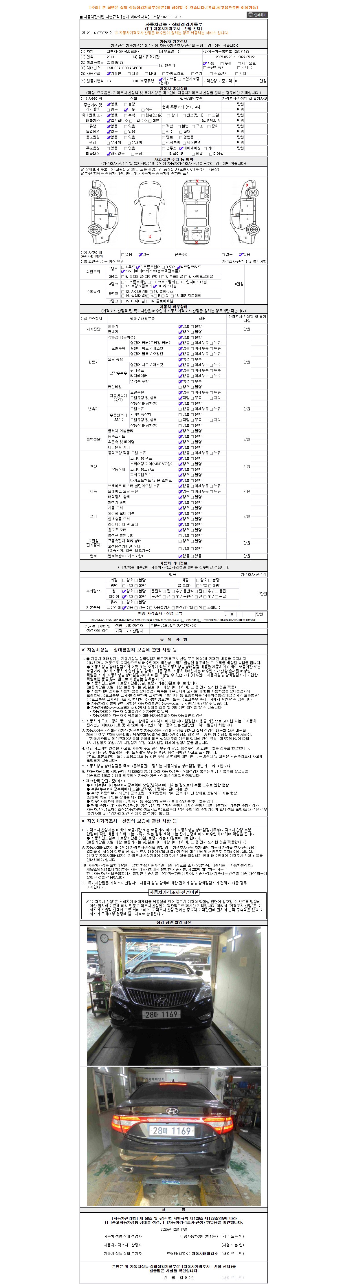 2. 차량 등록증이나 성능점검지 등을 상담자에게 요청및 확인하시고 사전에 미리 점검 하시기를 권유드립니다.