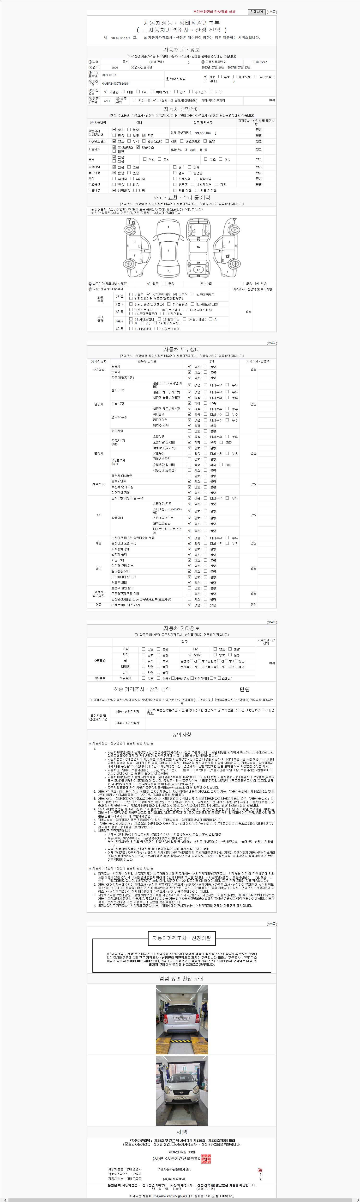 2. 차량 등록증이나 성능점검지 등을 상담자에게 요청및 확인하시고 사전에 미리 점검 하시기를 권유드립니다.