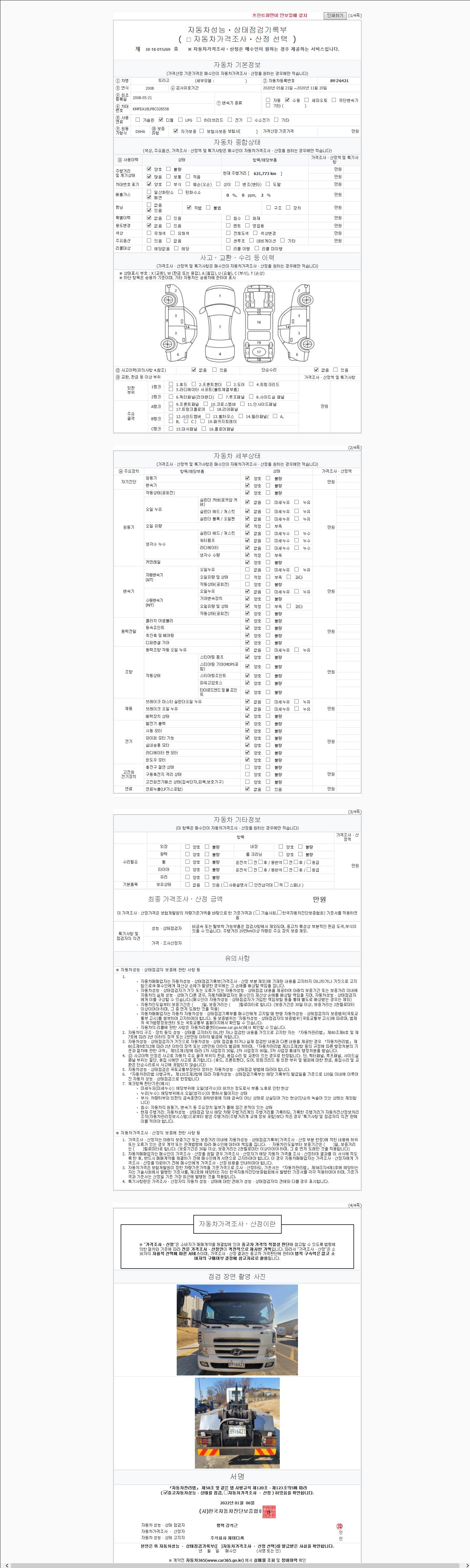 | 주행거리 | 621,779 km | 차량번호 | 89구6421 |