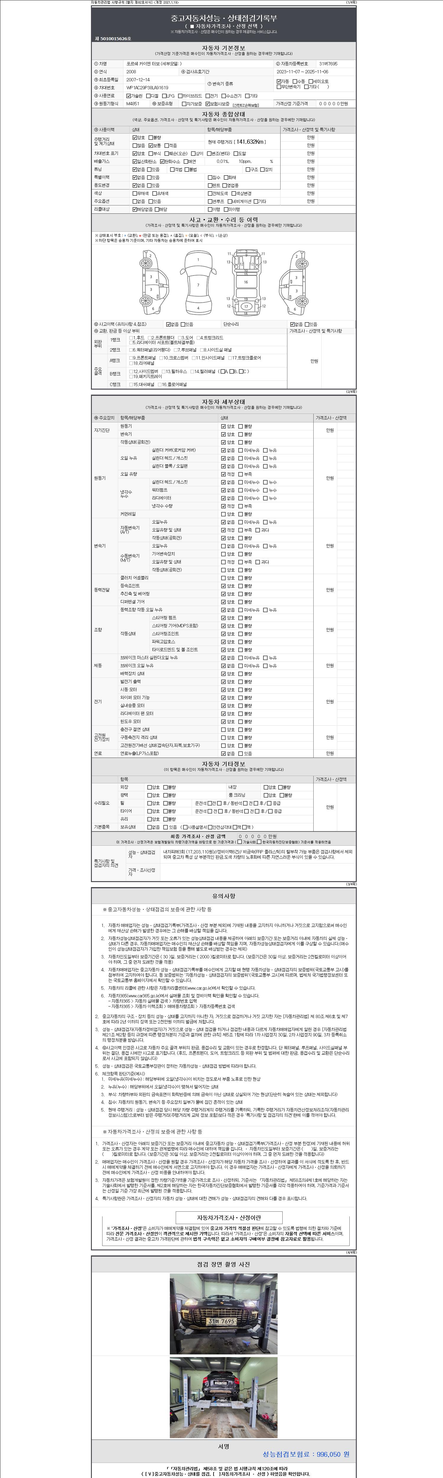 | 주행거리 | 141,632 km | 차량번호 | 31버7695 |
