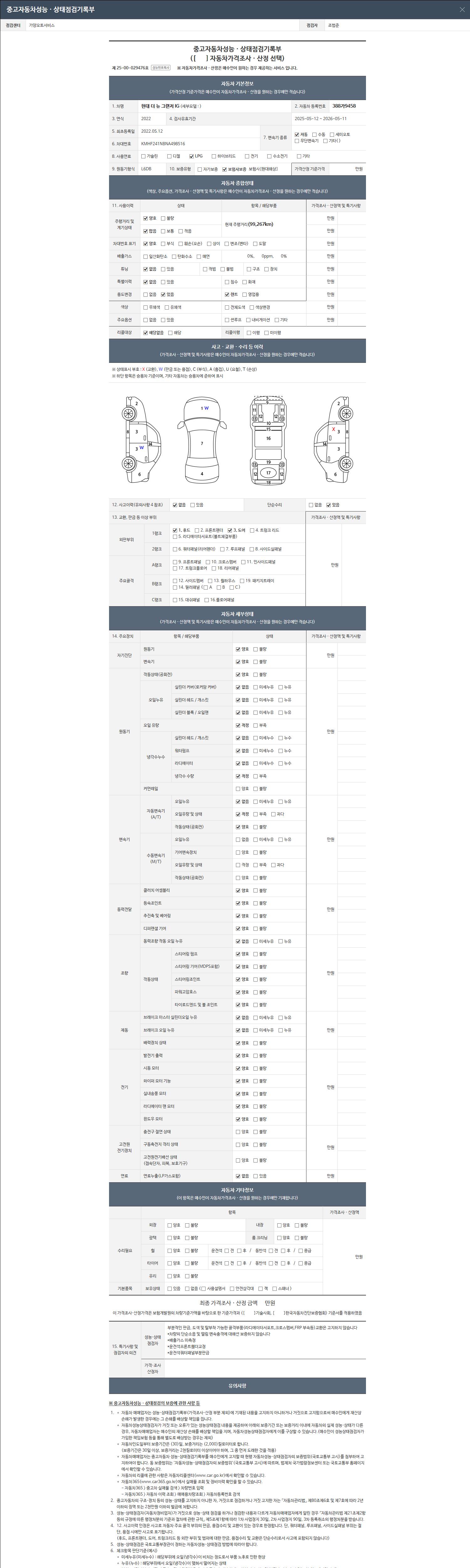 2. 차량 등록증이나 성능점검지 등을 상담자에게 요청및 확인하시고 사전에 미리 점검 하시기를 권유드립니다.