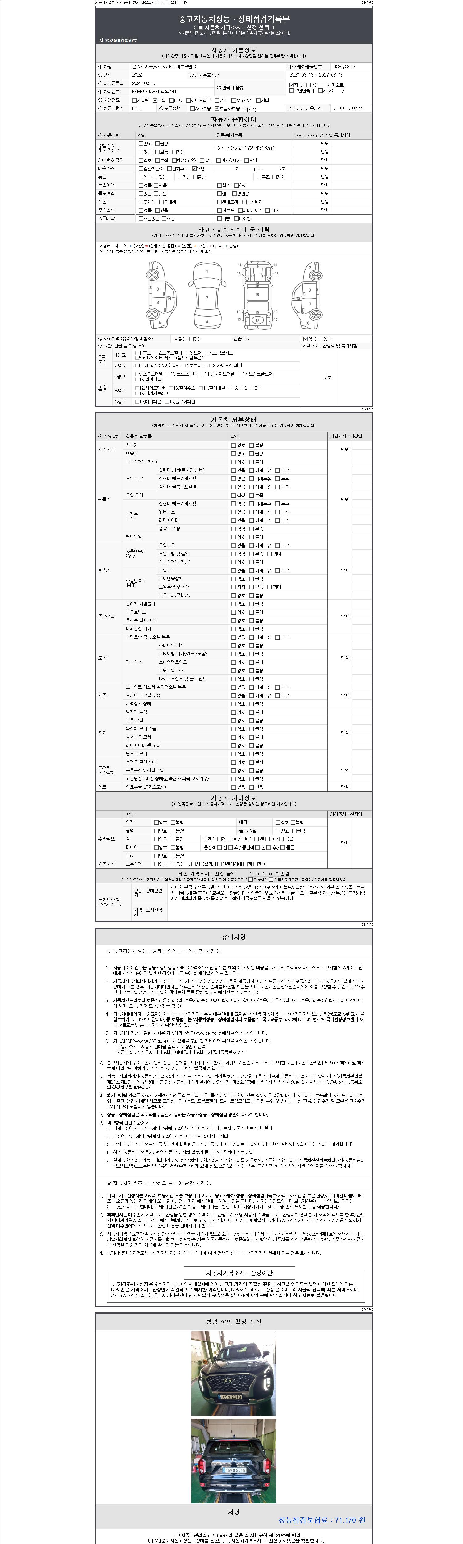 2. 차량 등록증이나 성능점검지 등을 상담자에게 요청및 확인하시고 사전에 미리 점검 하시기를 권유드립니다.