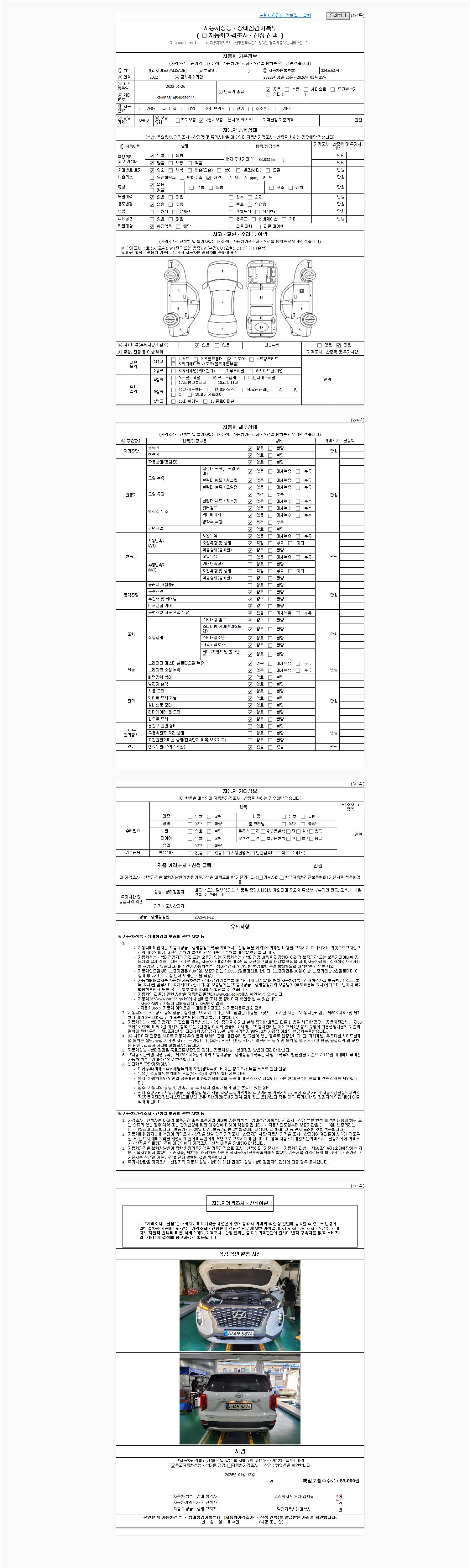 | 사고유무 | 성능기록부 참조 | 제시번호 | 제 2026001974 호 |