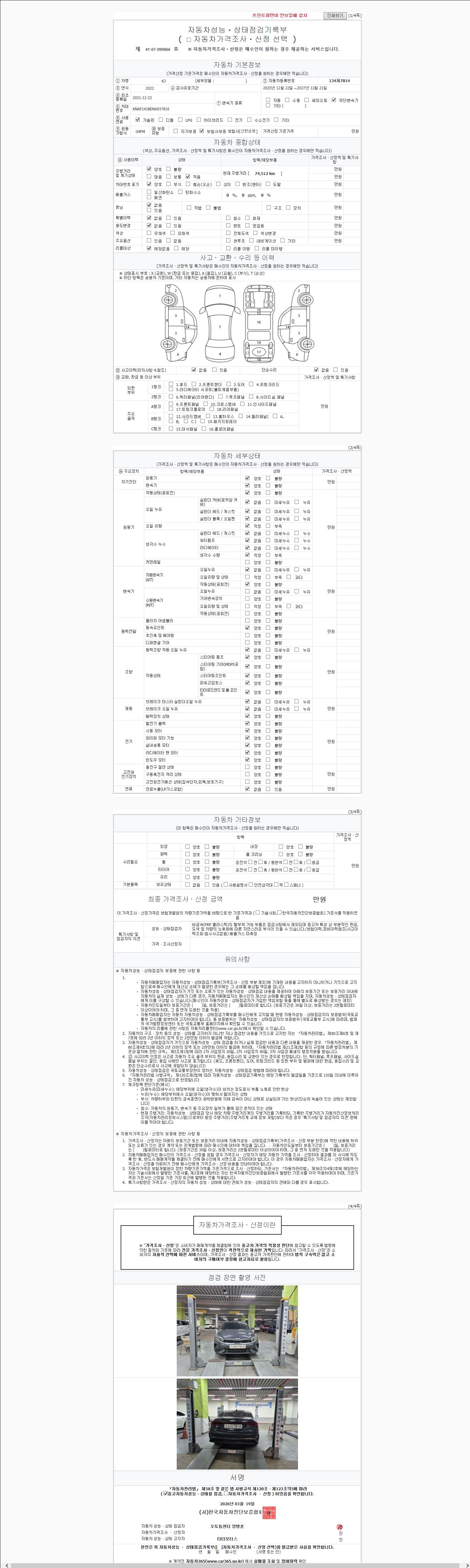2. 차량 등록증이나 성능점검지 등을 상담자에게 요청및 확인하시고 사전에 미리 점검 하시기를 권유드립니다.
