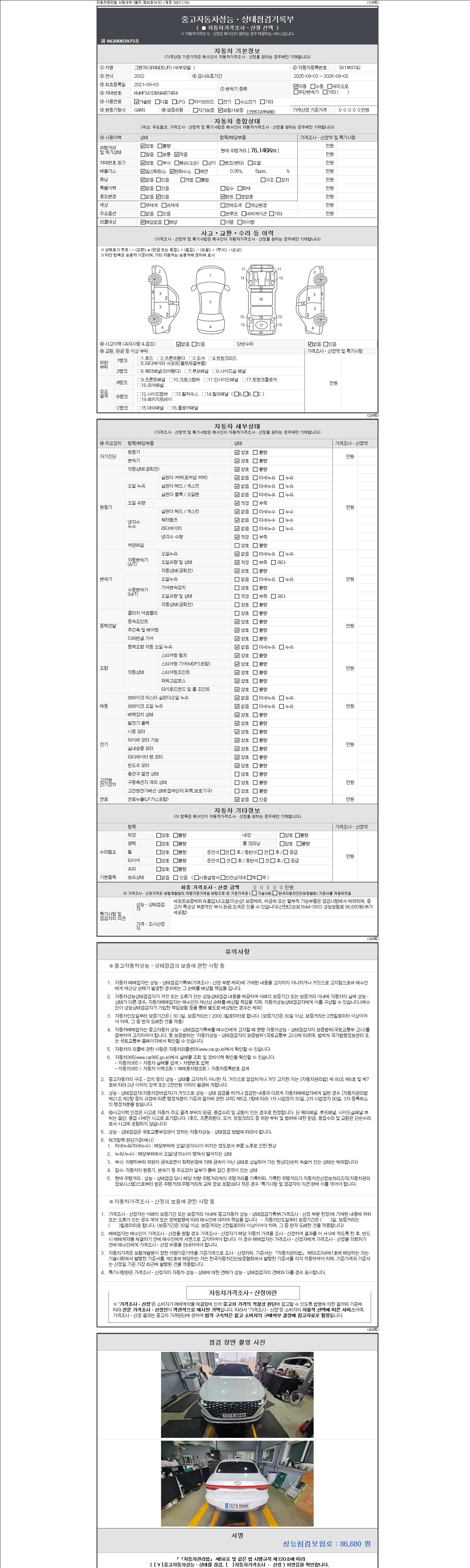 2. 차량 등록증이나 성능점검지 등을 상담자에게 요청및 확인하시고 사전에 미리 점검 하시기를 권유드립니다.