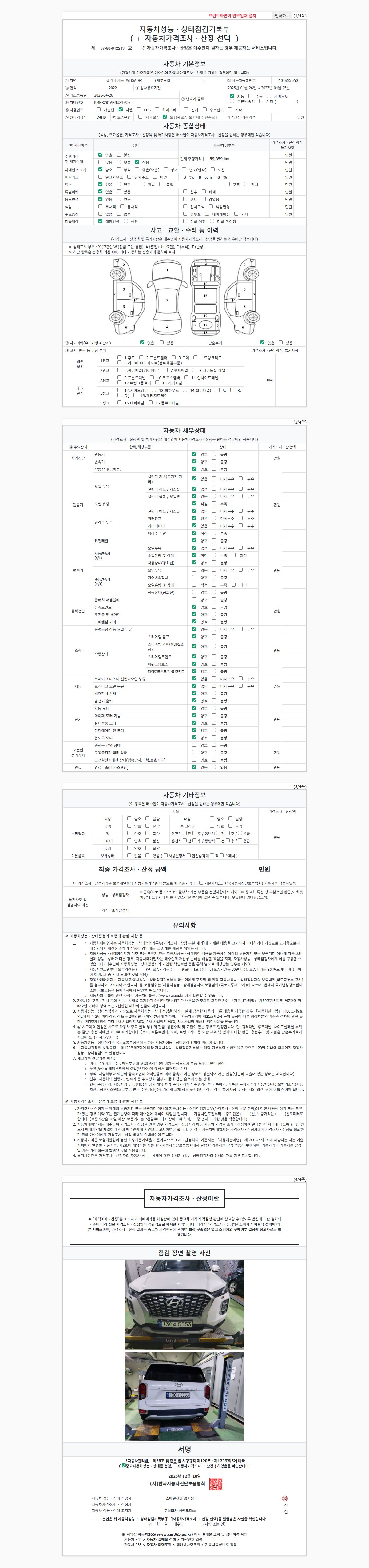 2. 차량 등록증이나 성능점검지 등을 상담자에게 요청및 확인하시고 사전에 미리 점검 하시기를 권유드립니다.