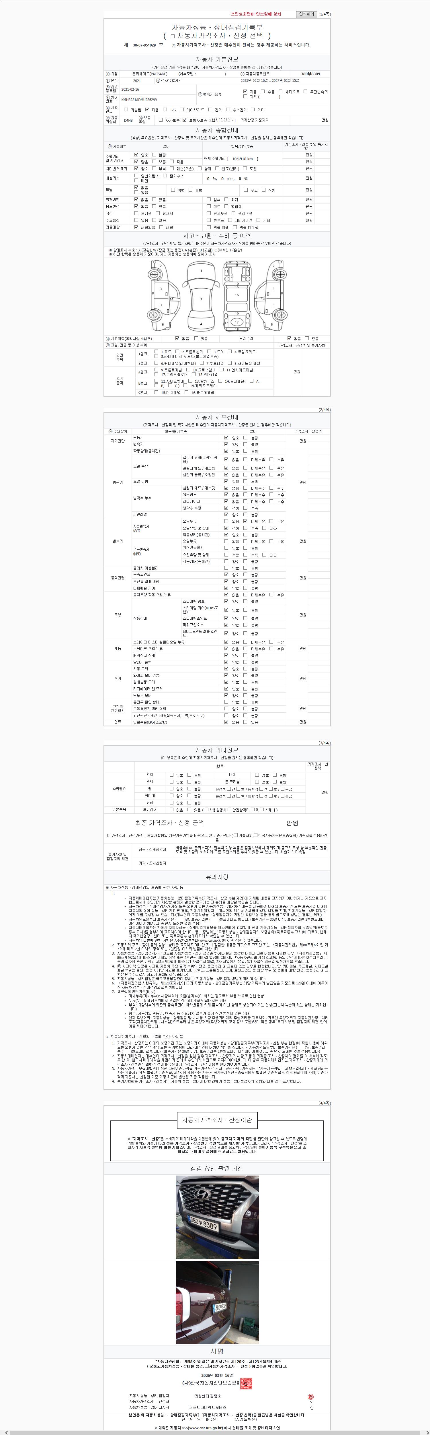 2. 차량 등록증이나 성능점검지 등을 상담자에게 요청및 확인하시고 사전에 미리 점검 하시기를 권유드립니다.