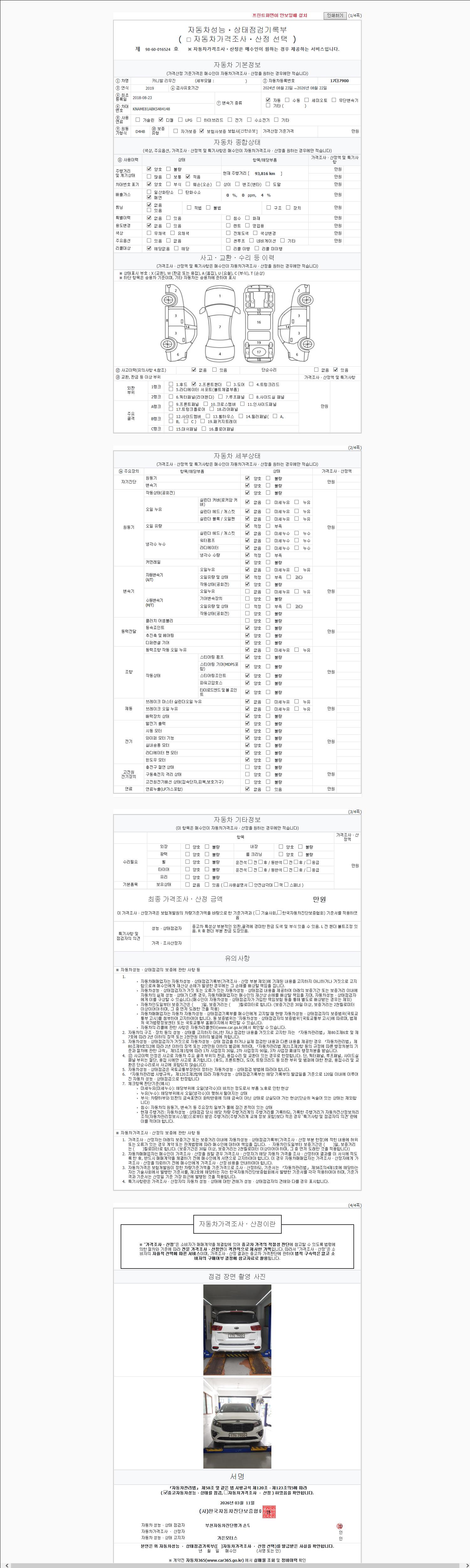 2. 차량 등록증이나 성능점검지 등을 상담자에게 요청및 확인하시고 사전에 미리 점검 하시기를 권유드립니다.