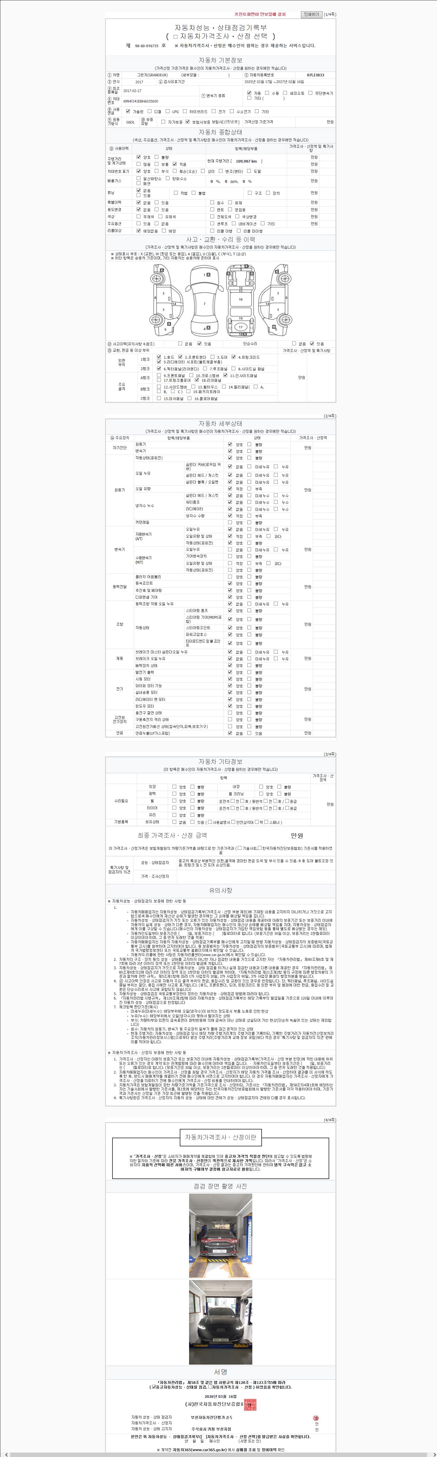 2. 차량 등록증이나 성능점검지 등을 상담자에게 요청및 확인하시고 사전에 미리 점검 하시기를 권유드립니다.