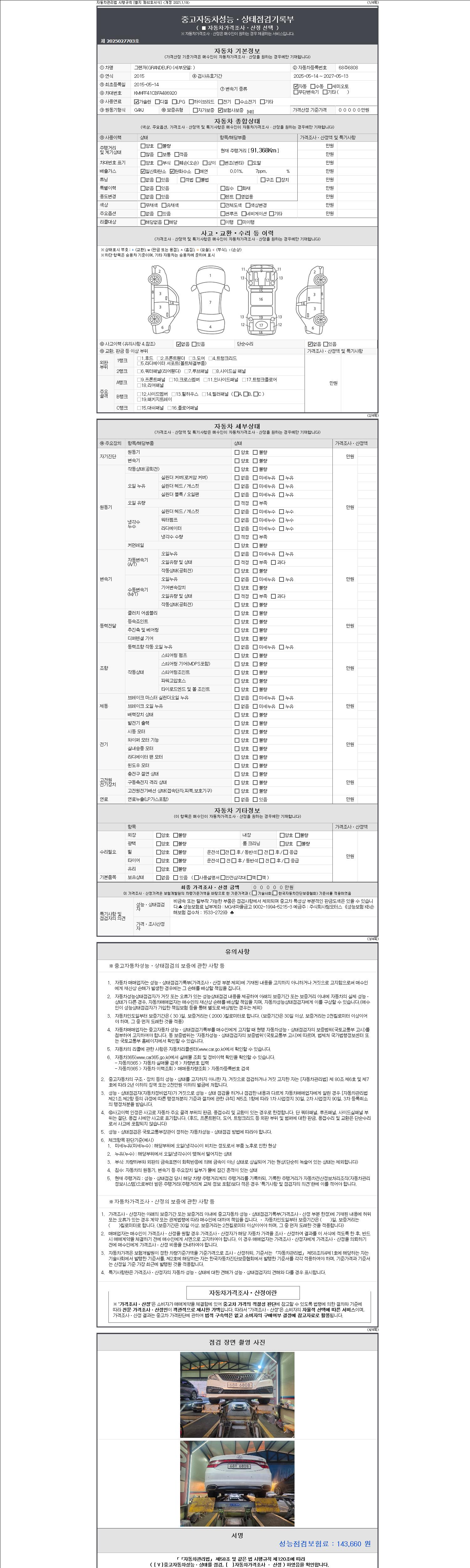 2. 차량 등록증이나 성능점검지 등을 상담자에게 요청및 확인하시고 사전에 미리 점검 하시기를 권유드립니다.
