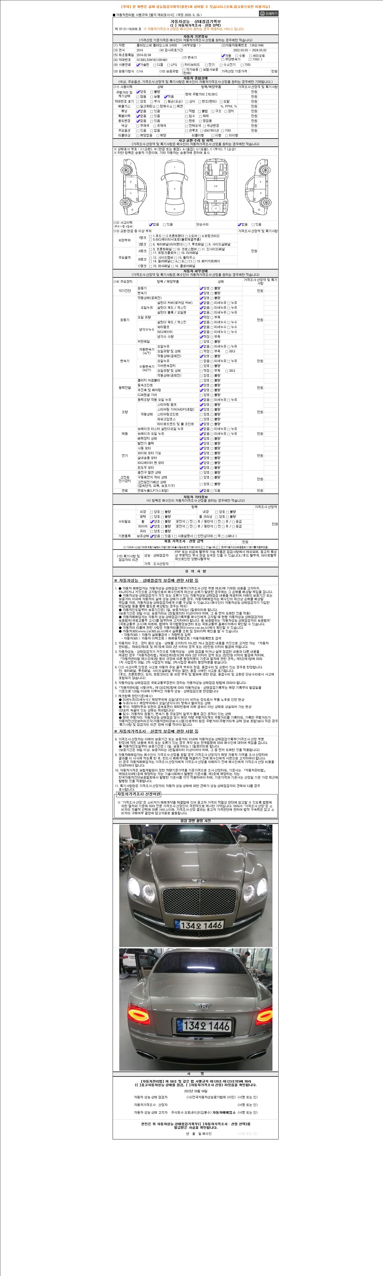 2. 차량 등록증이나 성능점검지 등을 상담자에게 요청및 확인하시고 사전에 미리 점검 하시기를 권유드립니다.