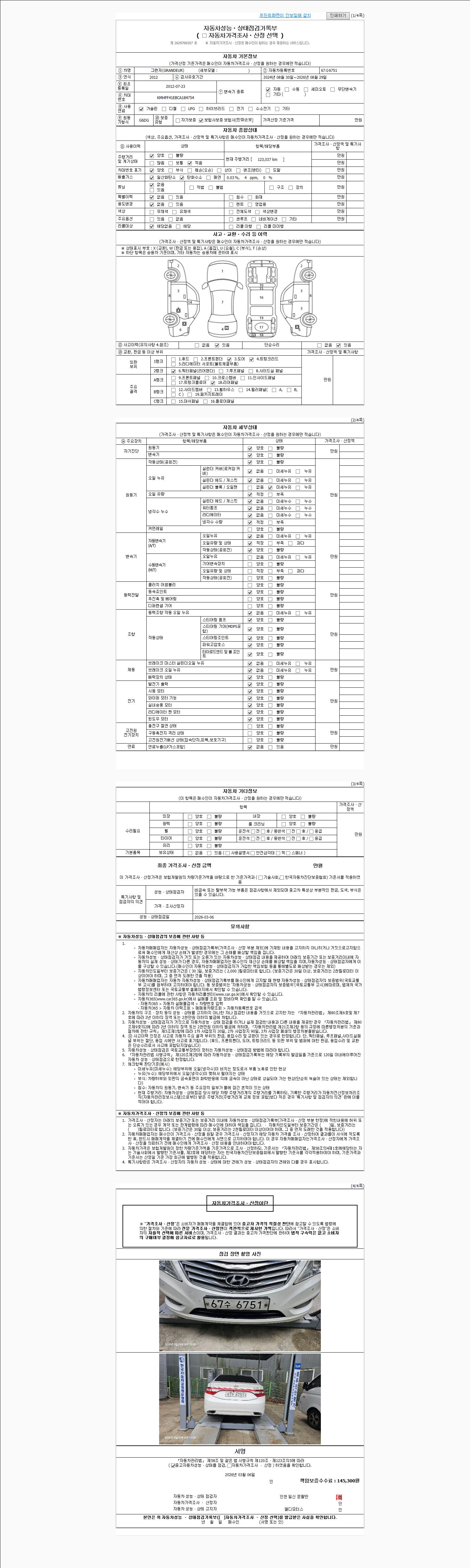 | 주행거리 | 123,037 km | 차량번호 | 67수6751 |