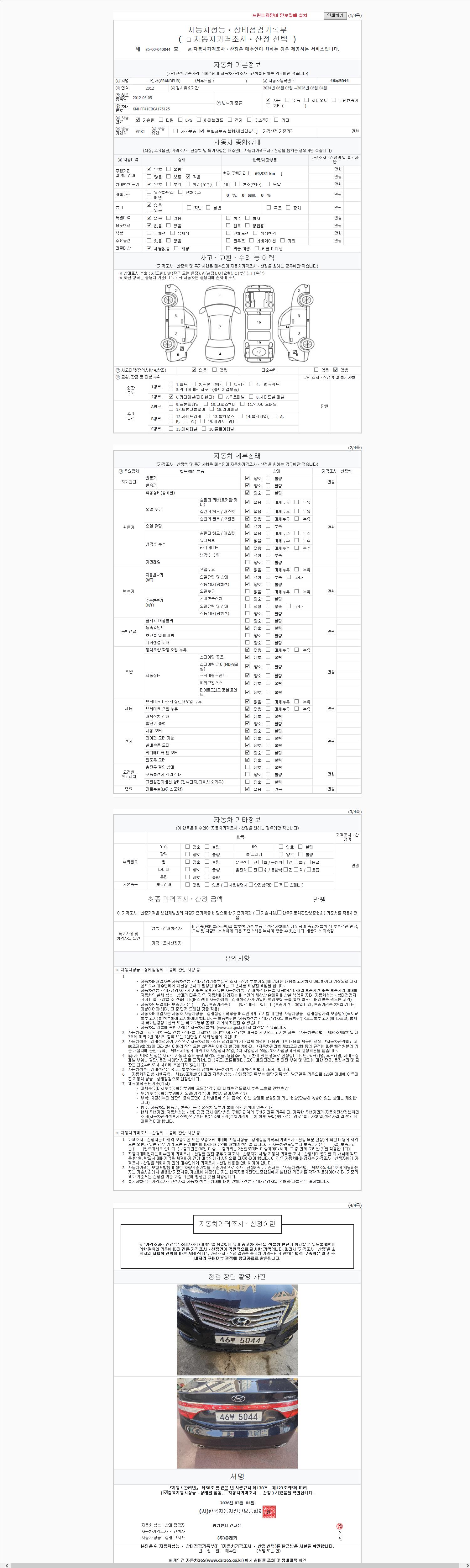 | 주행거리 | 69,930 km | 차량번호 | 46부5044 |