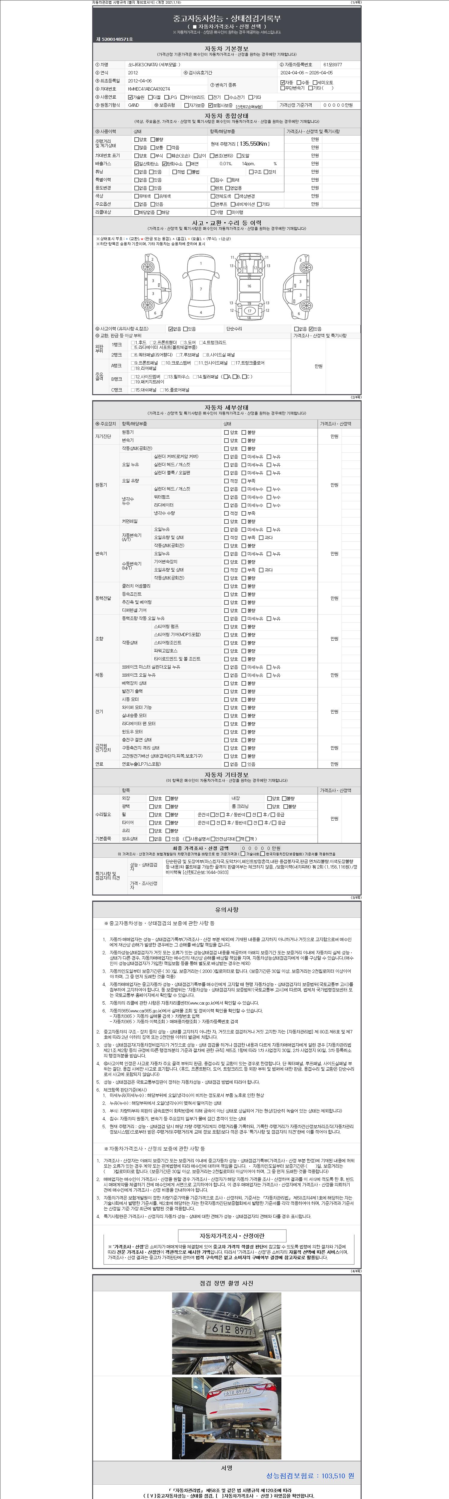 | 주행거리 | 135,550 km | 차량번호 | 61모8977 |