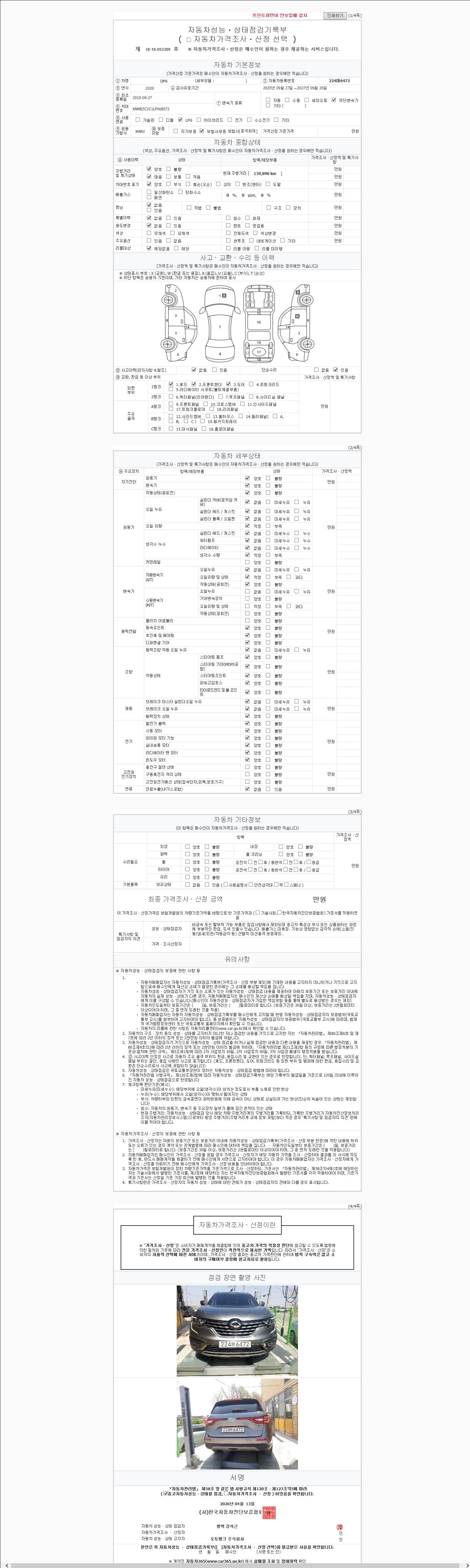 | 주행거리 | 139,890 km | 차량번호 | 224머6472 |