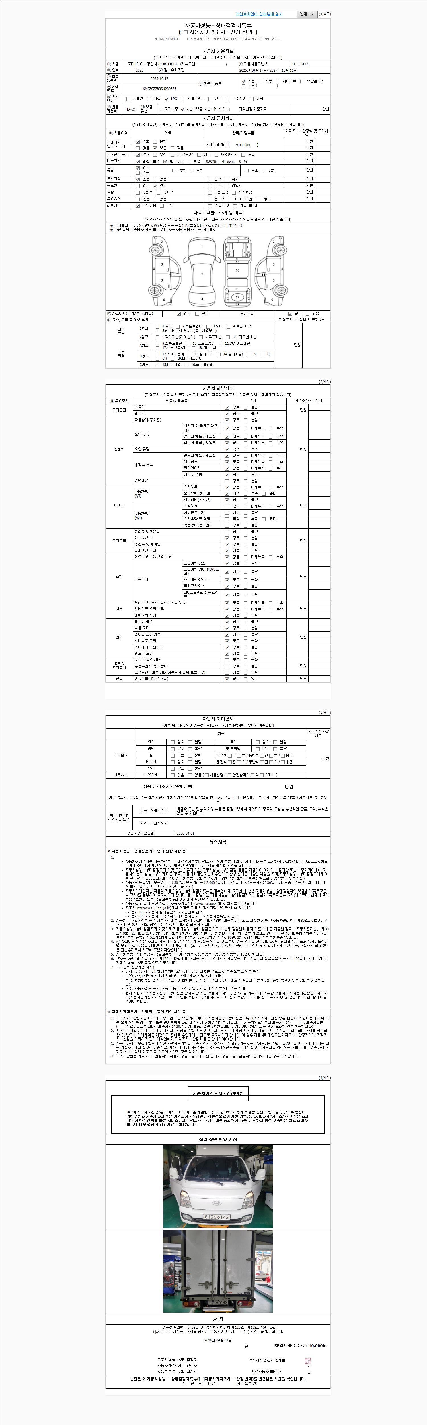 2. 차량 등록증이나 성능점검지 등을 상담자에게 요청및 확인하시고 사전에 미리 점검 하시기를 권유드립니다.