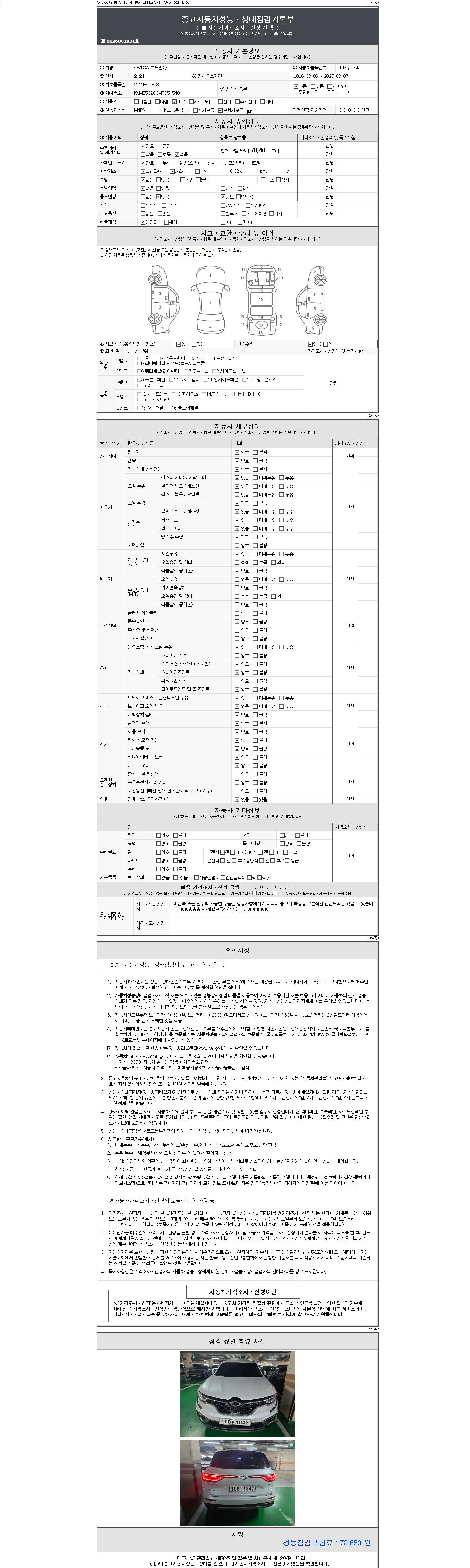 2. 차량 등록증이나 성능점검지 등을 상담자에게 요청및 확인하시고 사전에 미리 점검 하시기를 권유드립니다.
