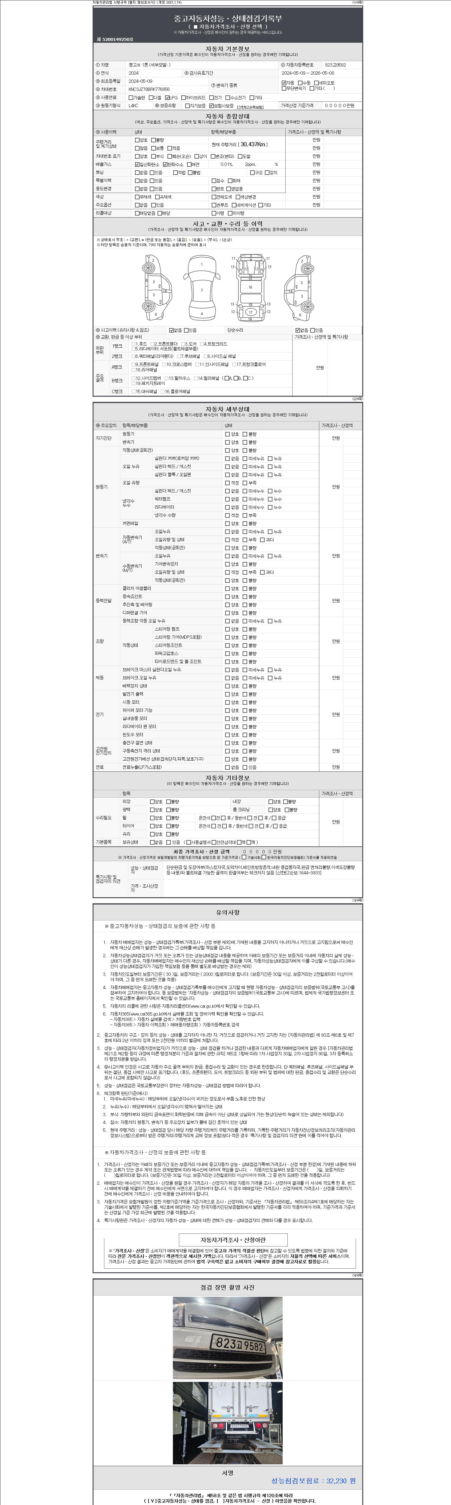 | 주행거리 | 30,437 km | 차량번호 | 823고9582 |