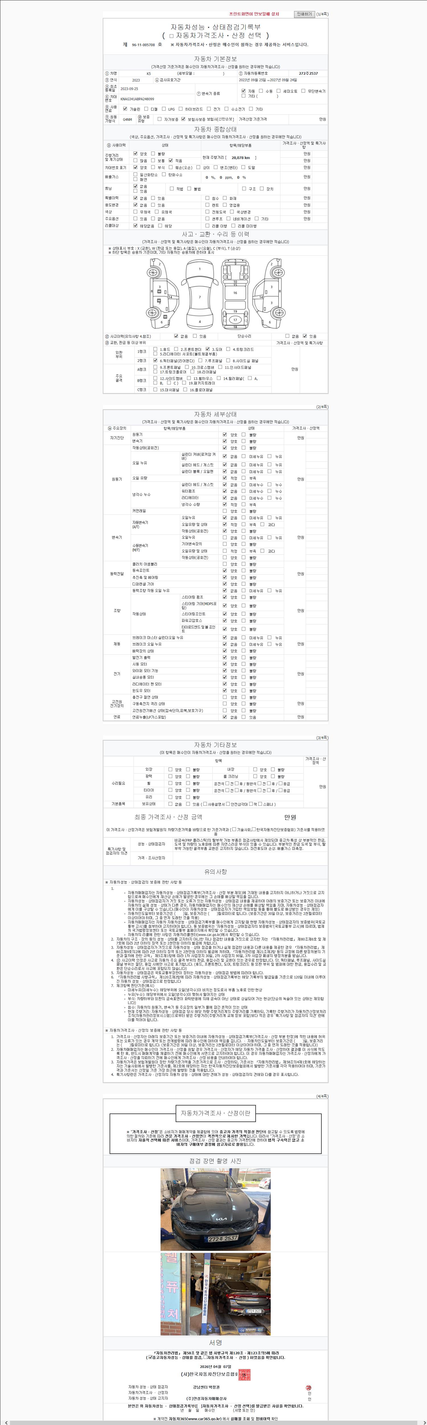 2. 차량 등록증이나 성능점검지 등을 상담자에게 요청및 확인하시고 사전에 미리 점검 하시기를 권유드립니다.