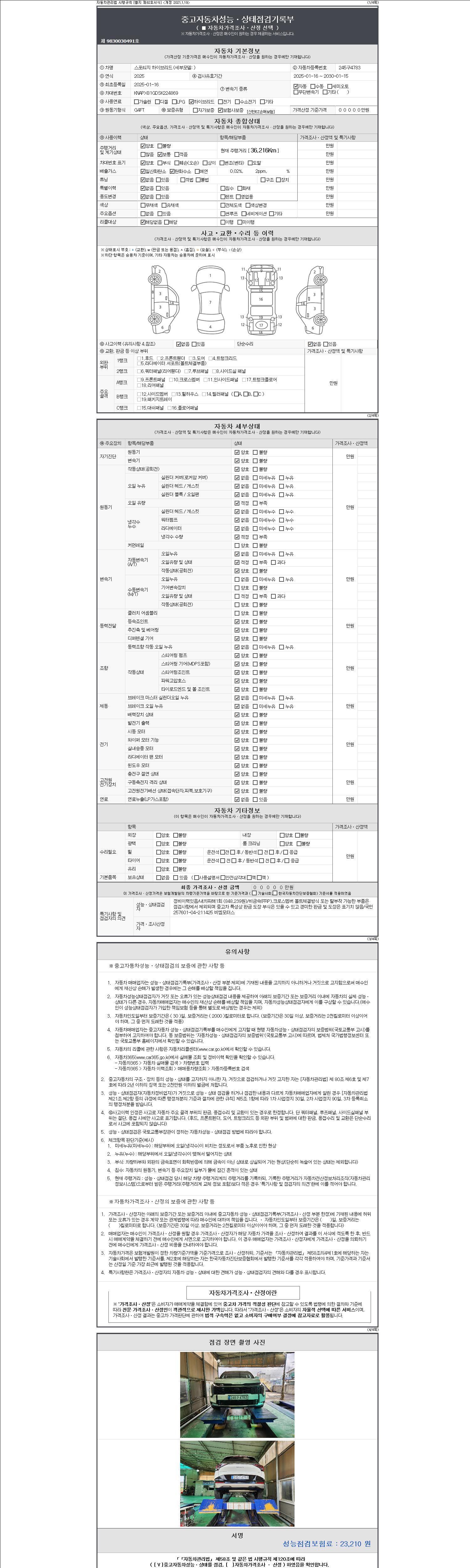 - 사고유무 : 성능기록부 참조