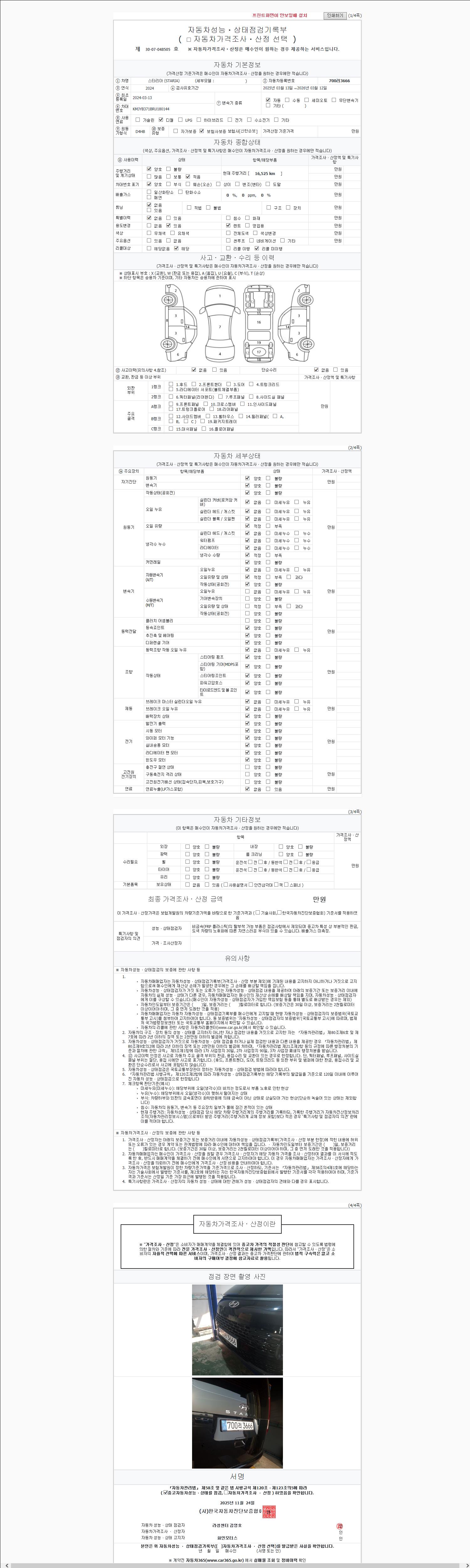 | 주행거리 | 16,526 km | 차량번호 | 700러3666 | 사고유무 | 성능기록부 참조 | 제시번호 | 제 2147483647 호 |