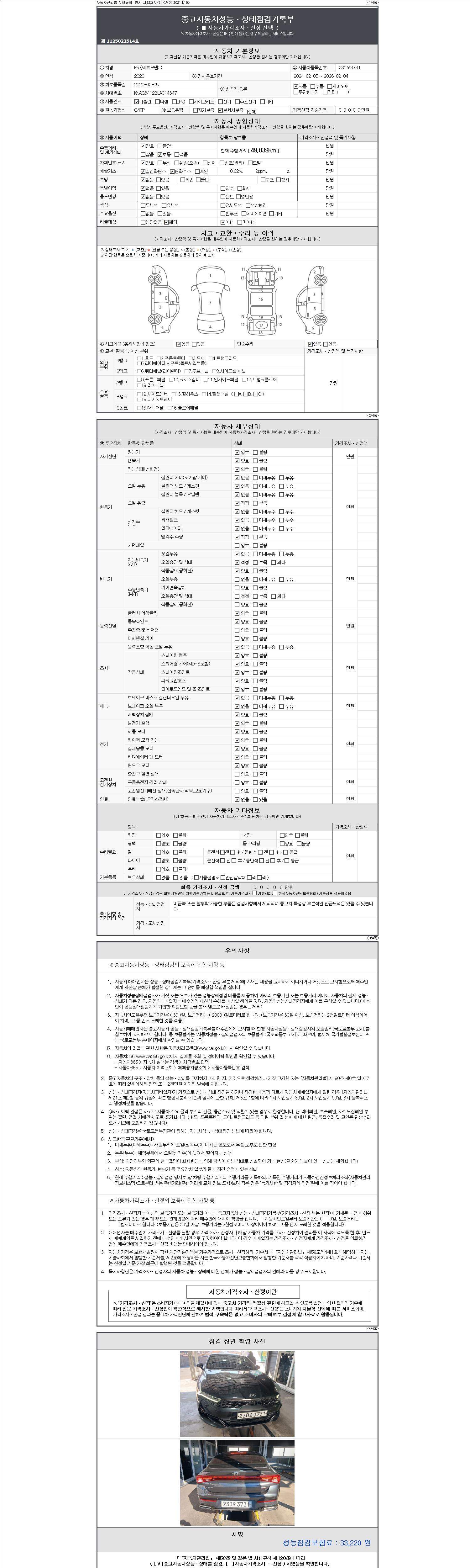 - 사고유무 : 성능기록부 참조