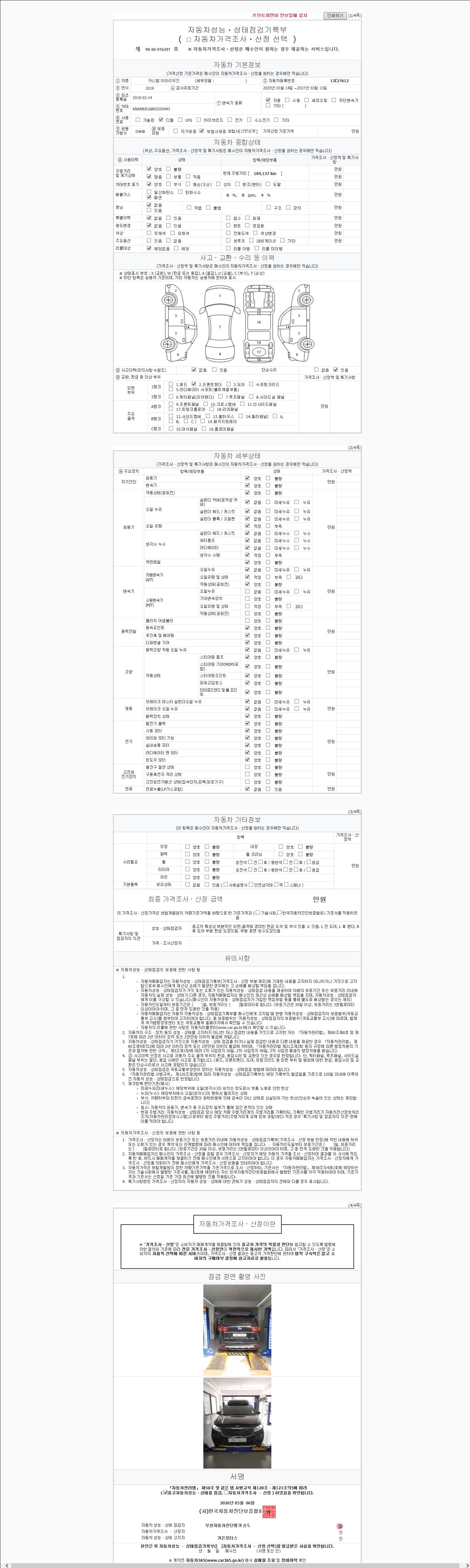 - 2. 차량 등록증이나 성능점검지 등을 상담자에게 요청및 확인하시고 사전에 미리 점검 하시기를 권유드립니다.
