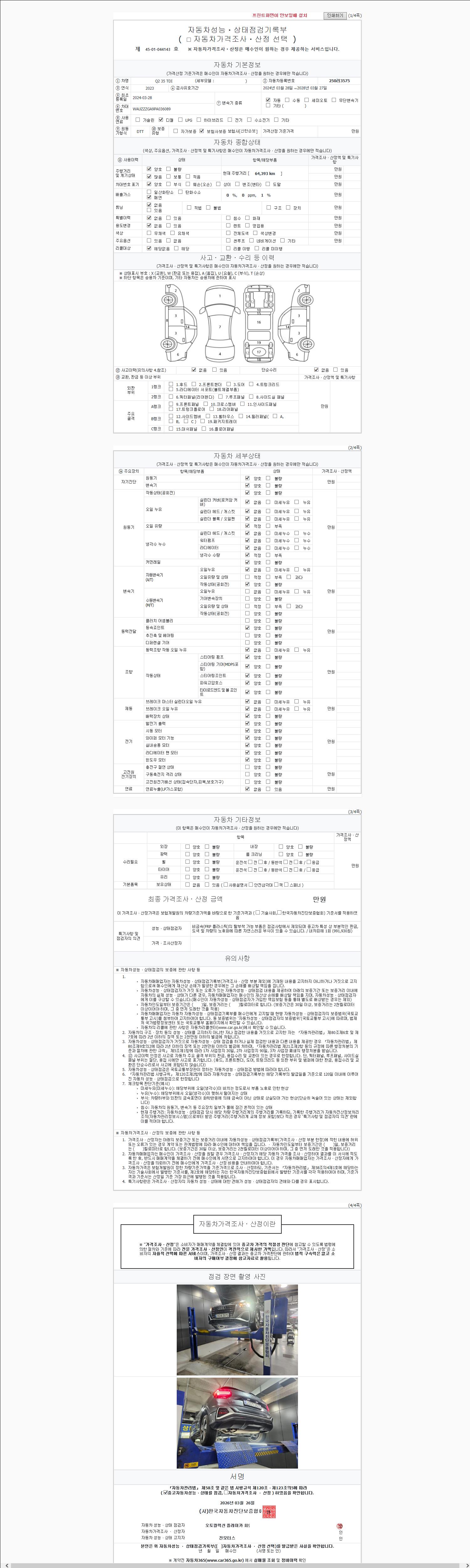 - 2. 차량 등록증이나 성능점검지 등을 상담자에게 요청및 확인하시고 사전에 미리 점검 하시기를 권유드립니다.