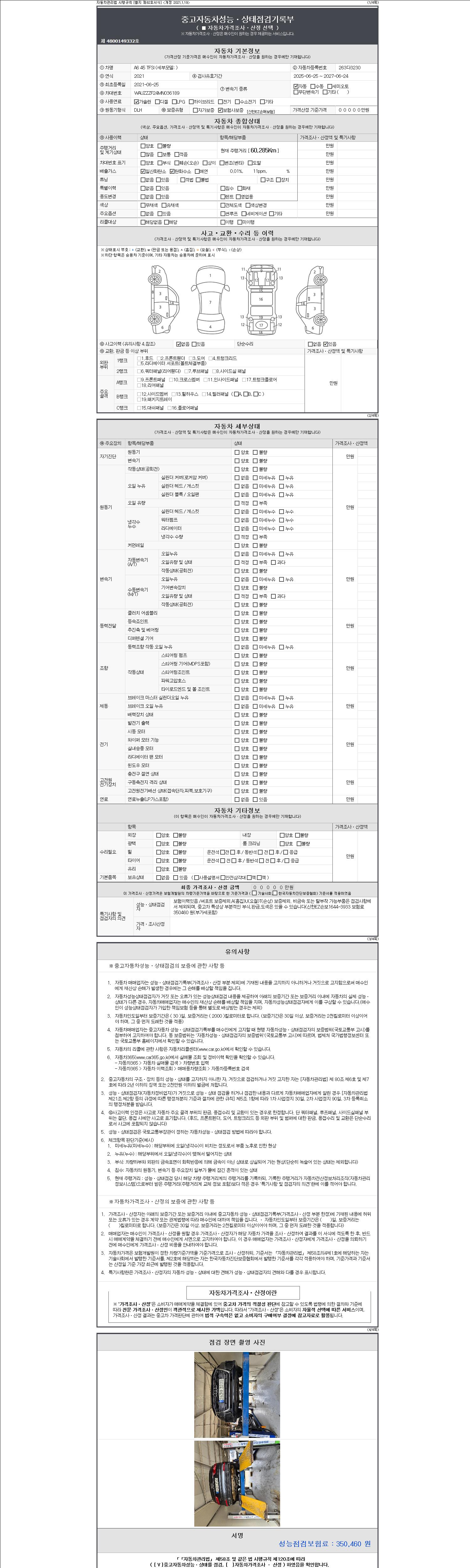 -중고자동차 매매업자를 통해 차량을 구입하실 경우 반드시 "중고자동차 성능, 상태점검 기록부"를 교뷰 받으셔야 하며, 매매업자는 반드시 의무 교부 하여야 압니다.