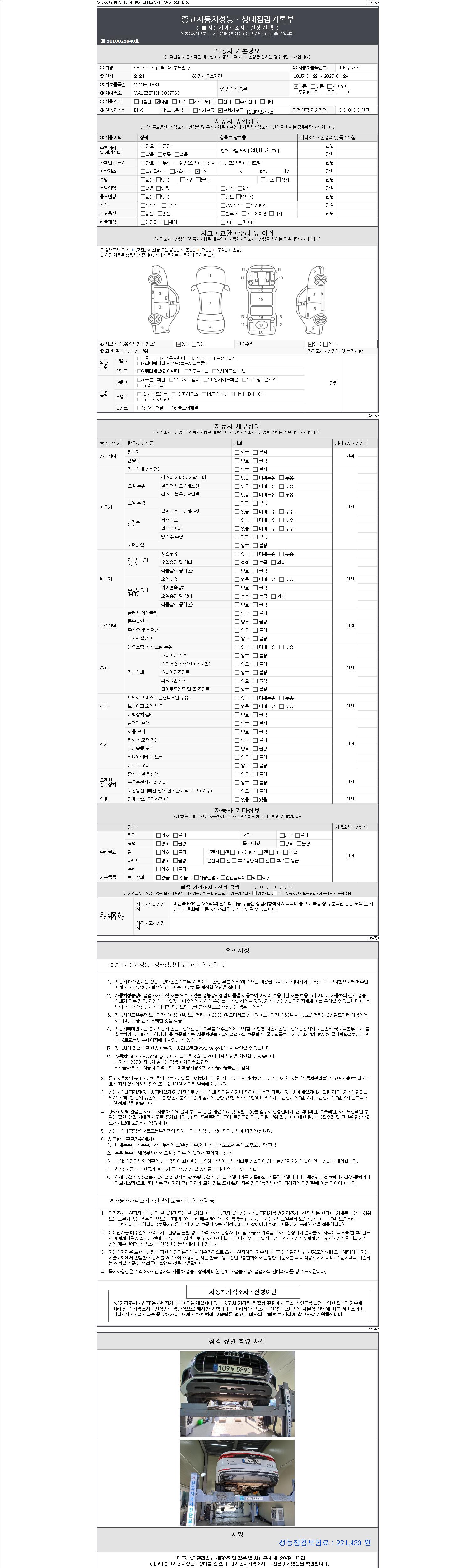 | 주행거리 | 39,013 km | 차량번호 | 109누5890 | 사고유무 | 성능기록부 참조 | 제시번호 | 제 2147483647 호 |